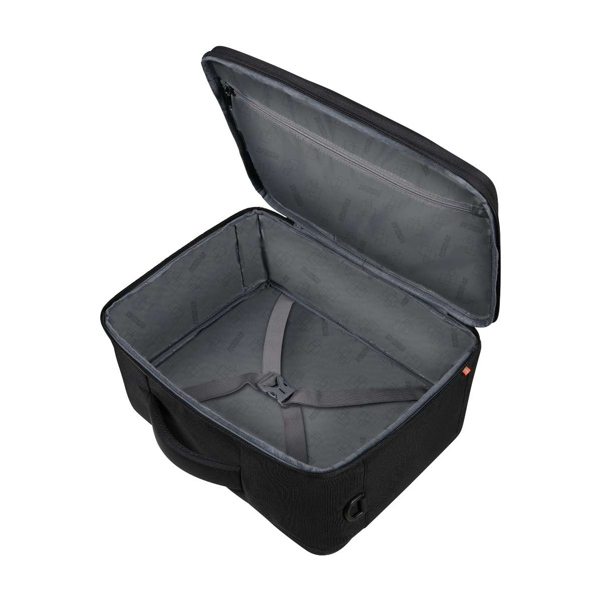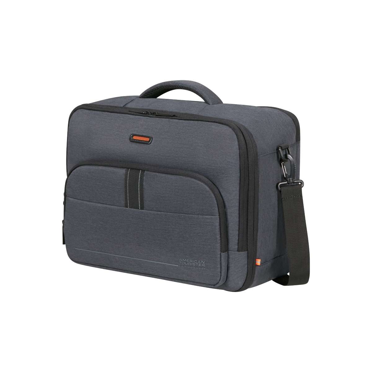 American Tourister At Work NXT 3 in 1 is a cabin bag that combines work style with travel practicality. Its dimensions of 30 × 40 × 20 cm make it suitable as both cabin luggage and under-seat luggage, and a volume of 26.5 l offers enough space for a 1–3 day trip. Quick access is provided by the front and back pocket, and it features an attachment for a suitcase trolley, a top handle, and a detachable non-slip shoulder strap. Inside, there is space for a laptop up to 15.6", a tablet pocket, internal organization, and cross straps for securing contents. Additional features include reflective elements and materials made from recycled PET.