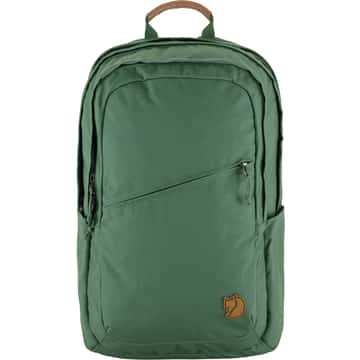 Simple and hardwearing Fjällräven Räven 28L backpack with great organizing possibilities. Separate Laptop compartment for laptops up to 15”. Large main compartment with a zippered inside security pocket. It also has a zippered front compartment with mesh organizer pockets inside, a fleece-lined top pocket and a padded air mesh back panel with comfortable shoulder straps. Robust leather handle at the top. Made from durable G-1000 HeavyDuty, this is a perfect backpack for commuting and everyday outdoor life.