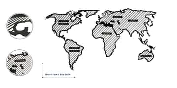 The map consists of larger wooden panels: North America, South America, EuroAsia, Africa, Australia and smaller islands. Installation is very easy and takes less than an hour.