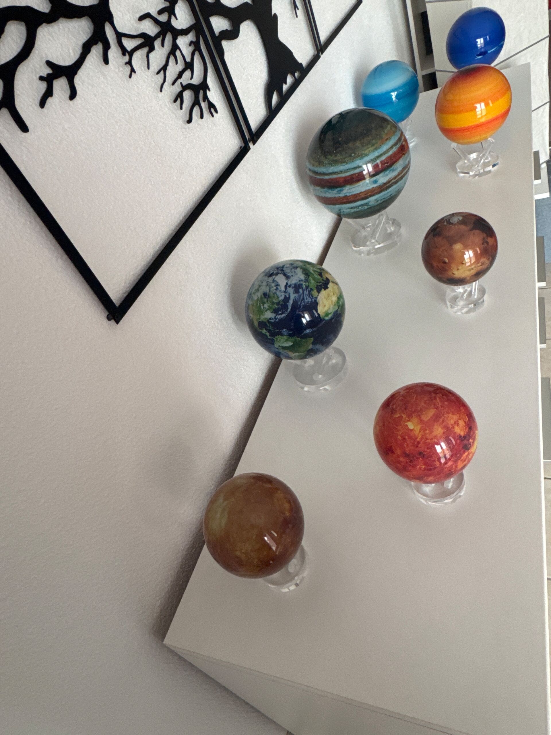 Each globe has a transparent outer shell made from carefully selected, high-quality acrylic. This external layer remains stationary while an internal one spins using advanced magnets for torque and solar cells to power the movement.